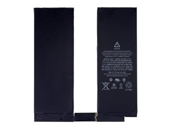 Bản Pro này có pin 3,77 V, 8134 mAh, 30,8 Wh, giảm nhẹ so với pin 38,8 Wh được tìm thấy trong12,9 “ , nhưng là bản nâng cấp từ pin 27,91 Wh trong 9,7″ .