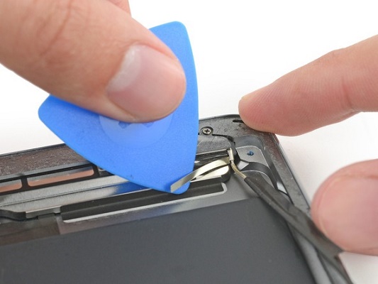 - Sử dụng đầu phẳng của một chiếc spudger để nhấc màn hình LCD ra khỏi hốc mắt vừa đủ để lấy nó bằng ngón tay của bạn.