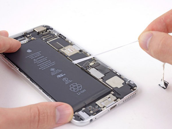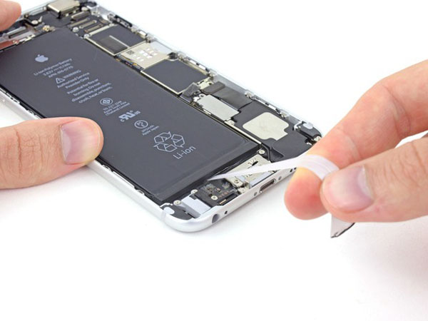 - Nhẹ nhàng kéo thẻ dính pin ra khỏi pin, về phía dưới cùng của iPhone.