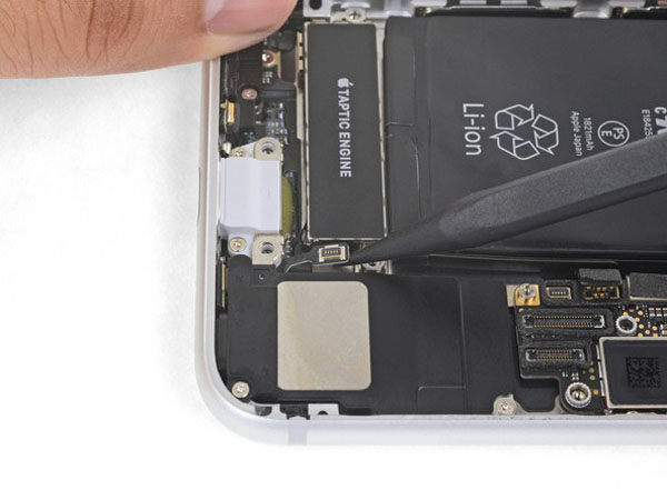 • Tháo ba vít giữ chặt khung bên cạnh Động cơ Taptic: