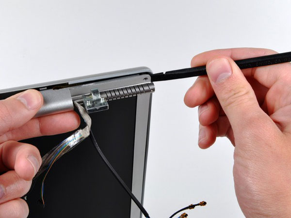 - Sử dụng đầu phẳng của một thanh đẩy để nhẹ nhàng nhấc một trong các góc trên cùng của màn hình LCD ra khỏi khung bezel mặt trước.