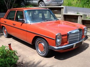 Chiếc xe đang được thực hiện, một chiếc Mercedes-Benz 1976 230.6 màu cam (kiểu 114.015) với hộp số tự động, dẫn động tay phải vì đây là xe ở New Zealand