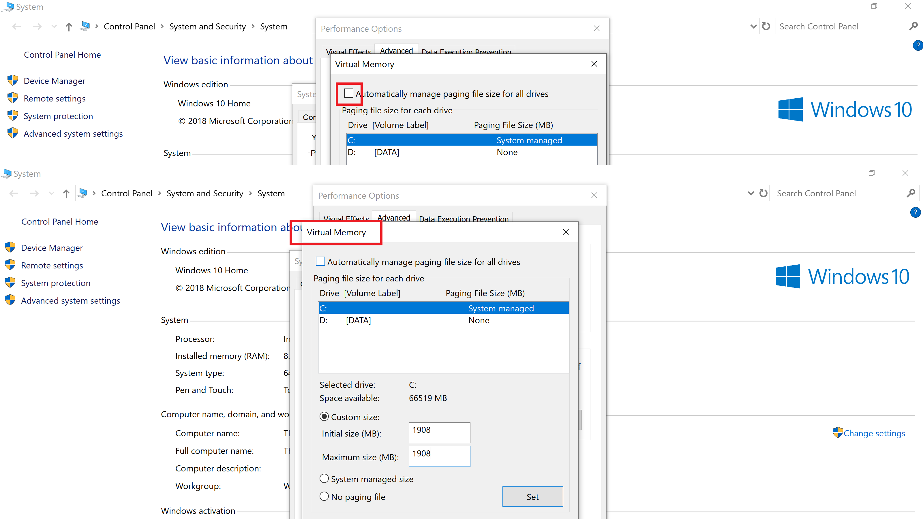 Sau đây là hướng dẫn chi tiết cách tắt mở bộ nhớ ảo.