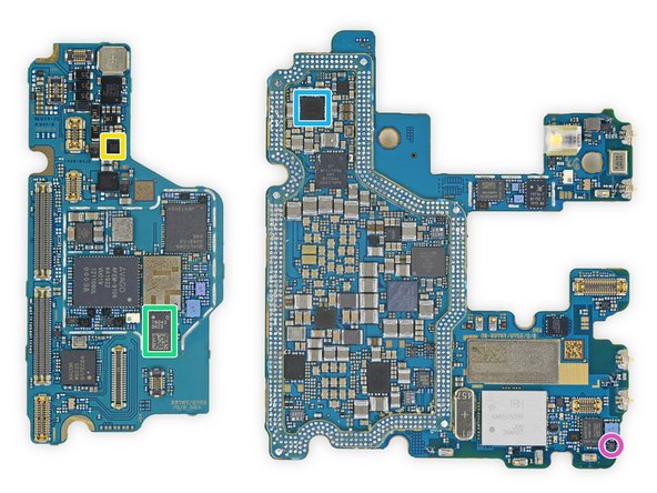 Màu xanh dương đậm: Qualcomm PM8150, PM8150C và PM8005 (có thể là PMIC)