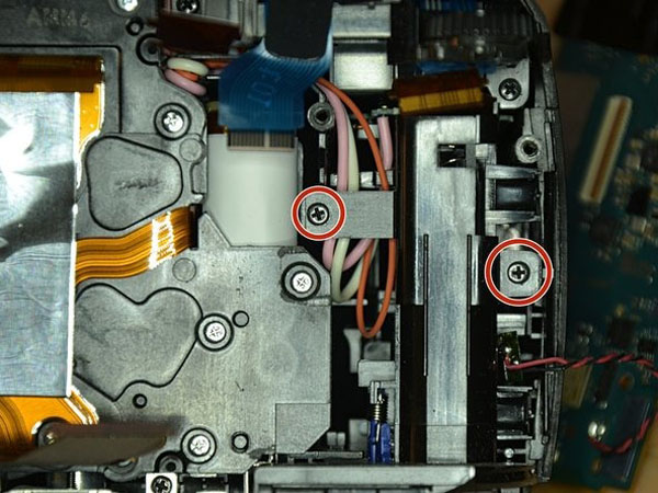 • Tháo 4 ốc vít này để tách phần quang học khỏi phần còn lại của vỏ máy