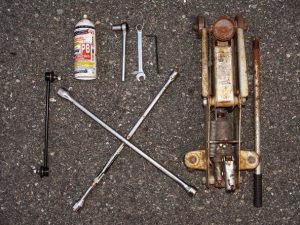 Sau đó, Jack lên xe và hạ xuống giá đỡ trục. Tháo các đai ốc, tháo bánh xe và sau đó tháo đai ốc trung tâm và cất giữ an toàn