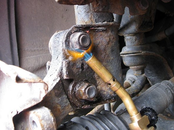 Tháo các bu lông Hub đến Thanh chống. Đầu tiên, sưởi ấm cho chúng thật tốt, (Ở phía lái xe, tôi đã để ngọn đuốc ở đó trong vài phút!) Với một ngọn đuốc propan
